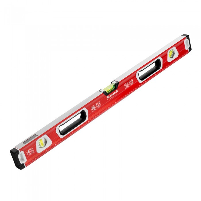 Уровень алюминиевый, магнит, фрезерованный, 3 глазка (1 зеркальный) двухкомпонентные рукоятки, 800 мм Matrix (34732)