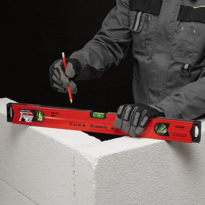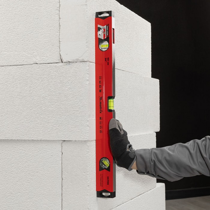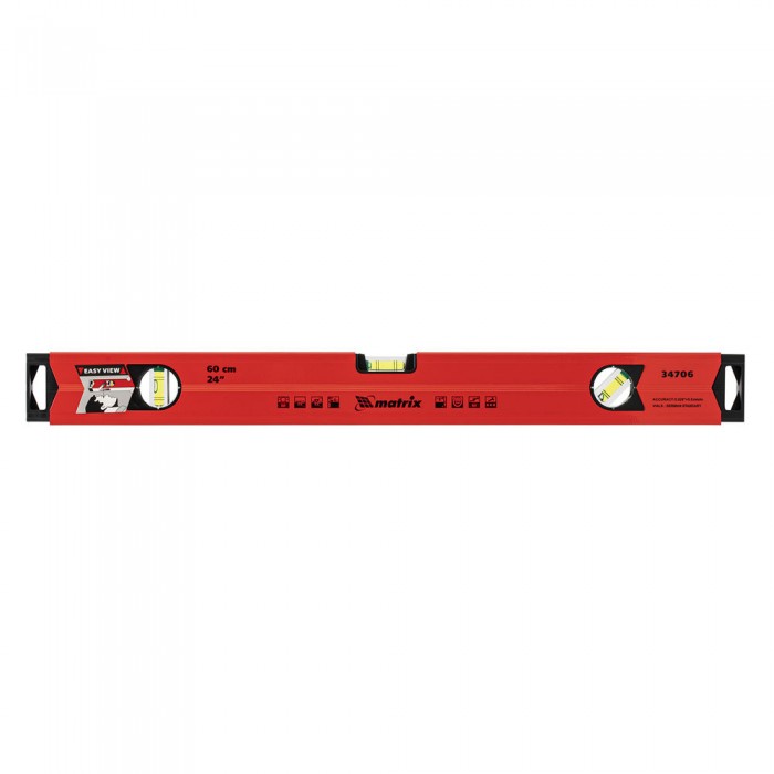 Уровень алюминиевый магнитный, 600 мм, фрезерованный, 3 глазка (1 зеркальный) усиленный Matrix (34706)
