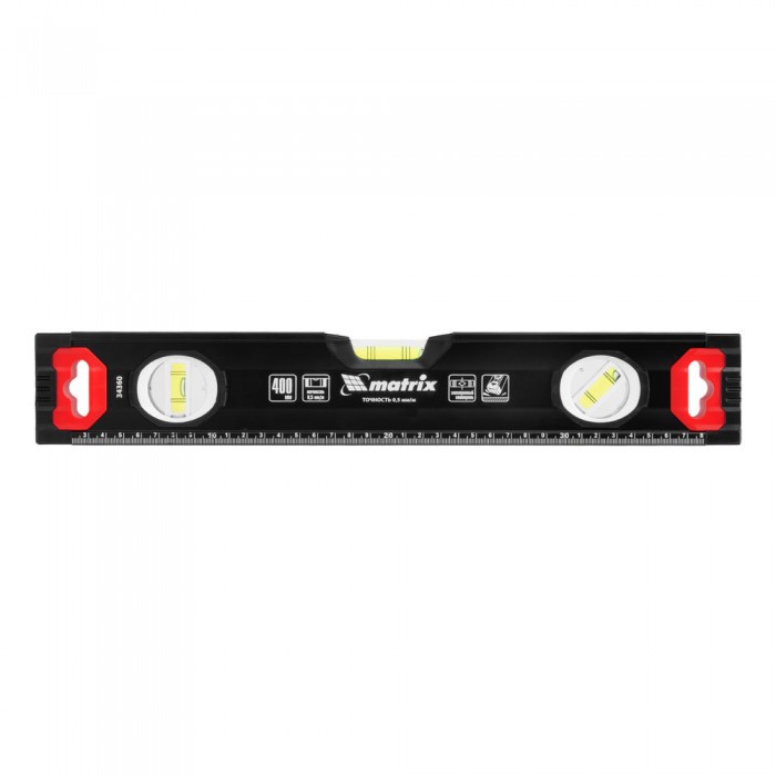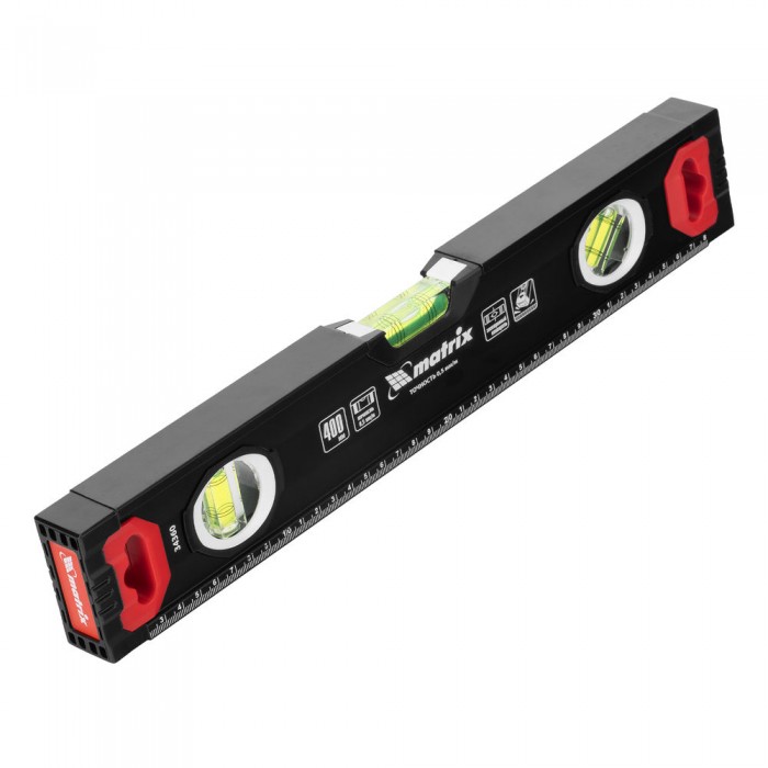Уровень алюминиевый, усиленный, фрезерованный, 3 глазка, 400 мм Matrix (34360)