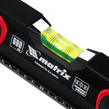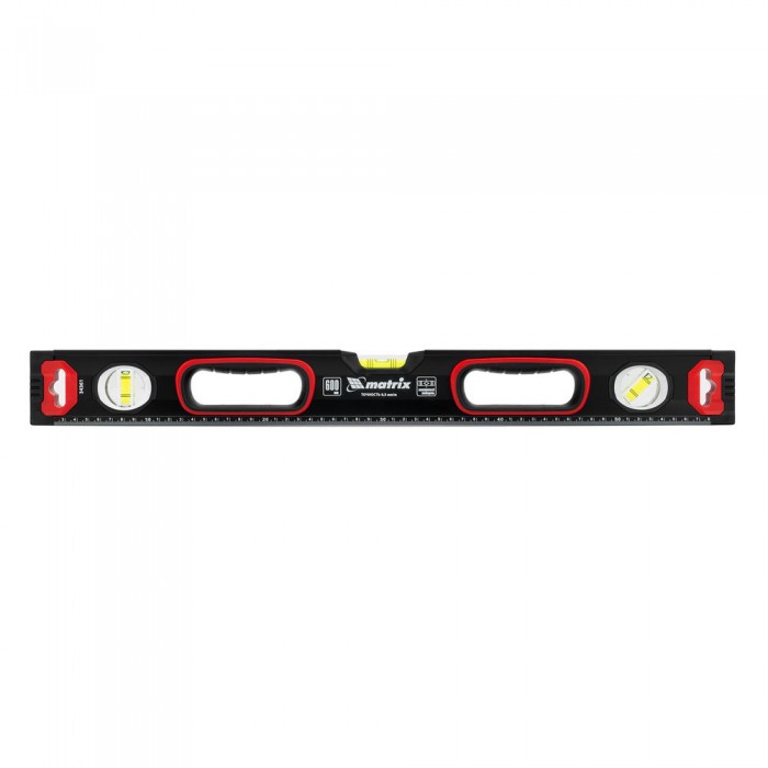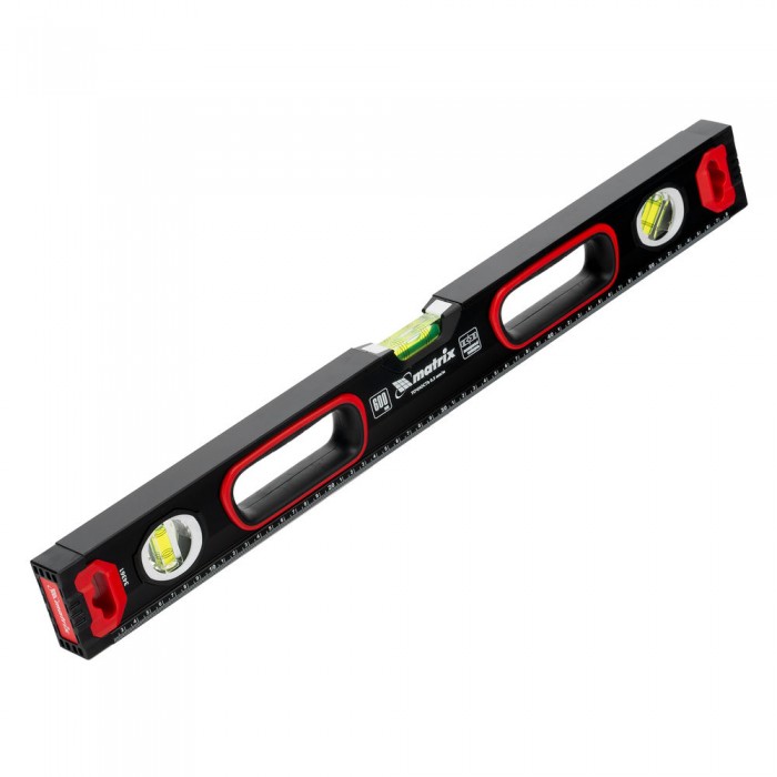Уровень алюминиевый, усиленный, фрезерованный, 3 глазка, двухкомпонентные рукоятки, 600 мм Matrix (34361)