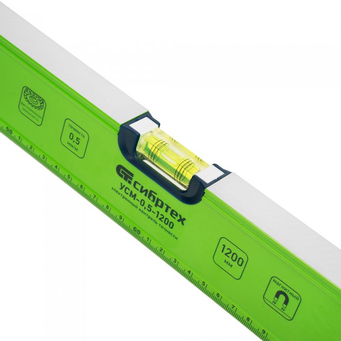 Уровень алюминиевый УСМ-0,5-1200, фрезерованный, 3 глазка, магнитный, рукоятки, 1200 мм Сибртех (34118)