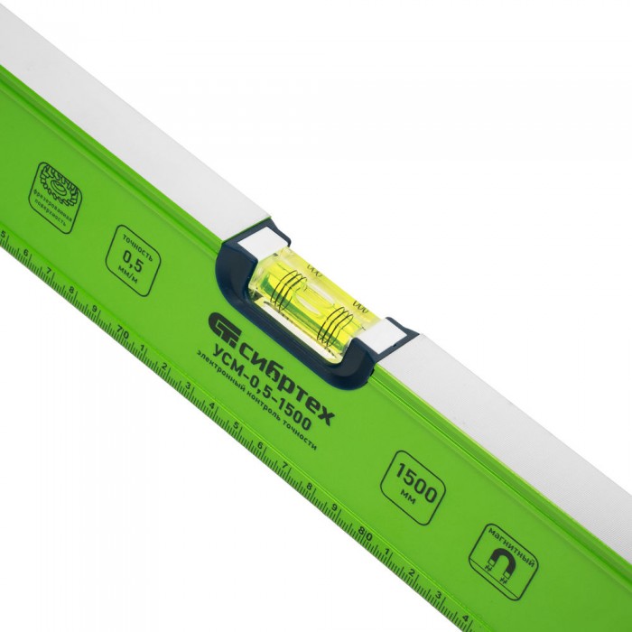 Уровень алюминиевый УСМ-0,5-1500, фрезерованный, 3 глазка, магнитный, рукоятки, 1500 мм Сибртех (34119)