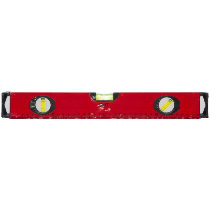 Уровень "Бизон", 3 глазка, красный корпус, магнитная полоса, ручки, шкала 400 мм (18141)