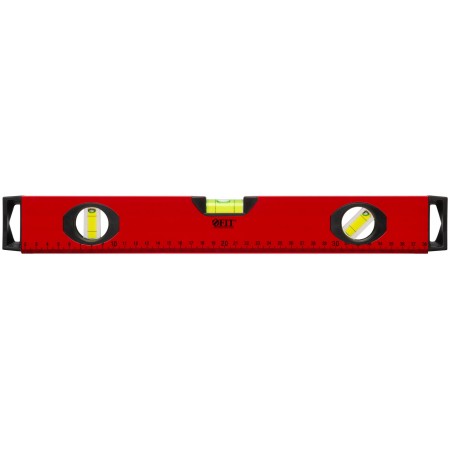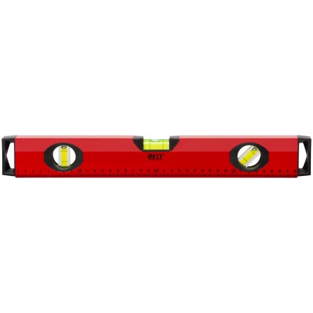 «Бизон». Магнитная полоса в нижней кромке для надежного удерживания уровня на металлических (ферромагнитных) поверхностях в процессе работы. 3 глазка, шкала. Материал: алюминий, пластиковые вставки.