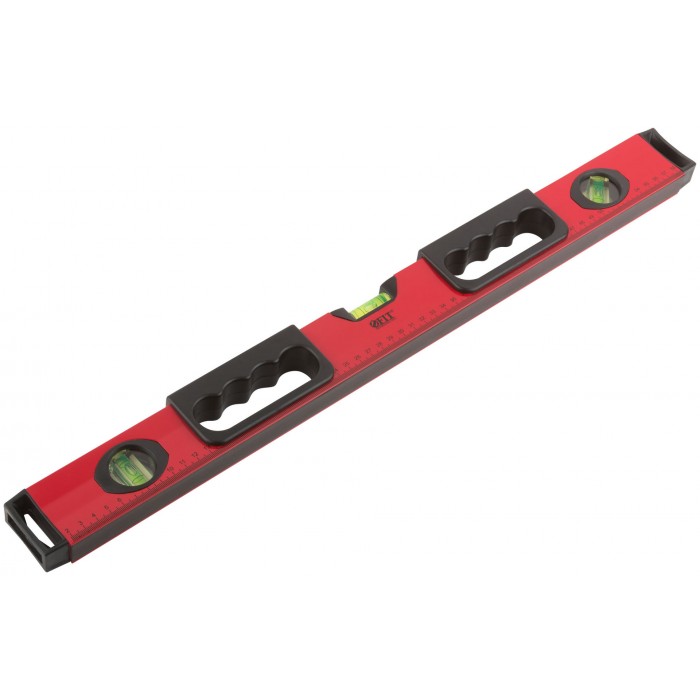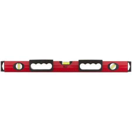 Уровень "Бизон", 3 глазка, красный корпус, магнитная полоса, ручки, шкала 600 мм (18142)