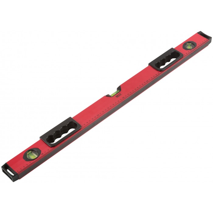 Уровень "Бизон", 3 глазка, красный корпус, магнитная полоса, ручки, шкала 800 мм (18143)