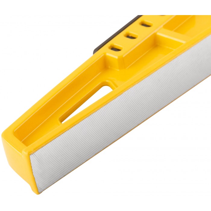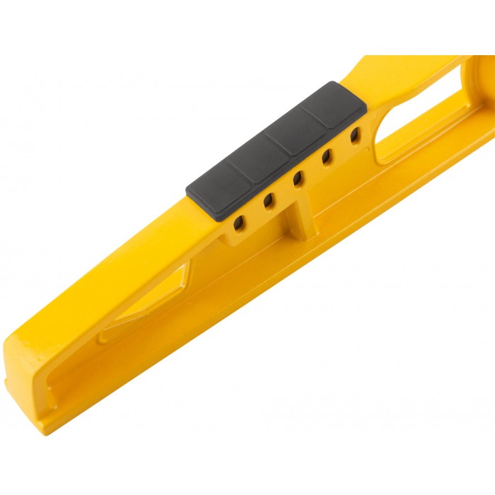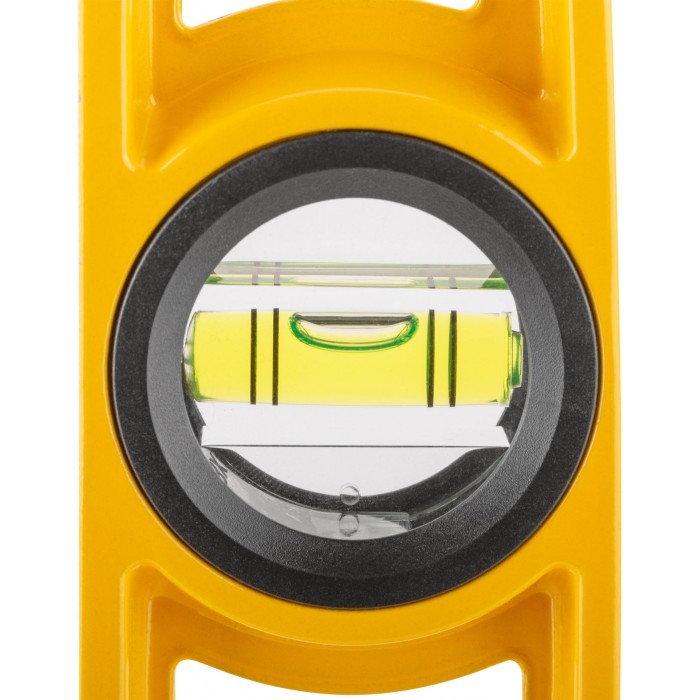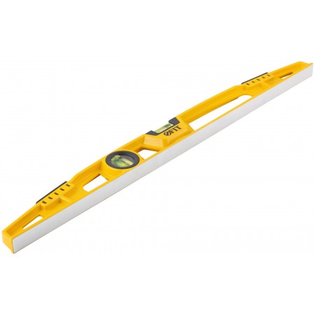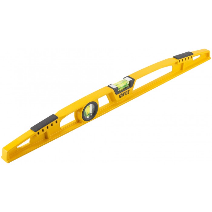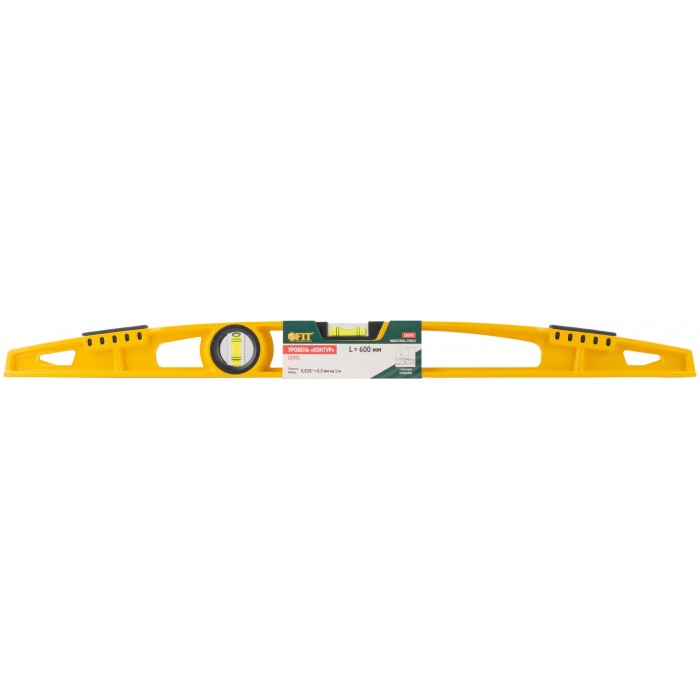 «Контур». Увеличенная точность - 0,5 мм/1 м. Литой усиленный профиль, 2 глазка, фрезерованная рабочая поверхность. Прорезиненные ударные площадки для выравнивания поверхности при проведении строительных и отделочных работ на горизонтальной и вертикальной поверхностях (кладка кирпича, кафельной плитки). Материал: алюминий, резина.