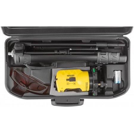Самоуспокаивающийся. В чемоданчике + поворотная платформа + тренога + очки. Источник питания: 2х1.5 В батарейки (тип АА), максимальный рабочий диапазон – 10 м. Материал: алюминий, пластик. Упаковка: пластиковый чемодан.