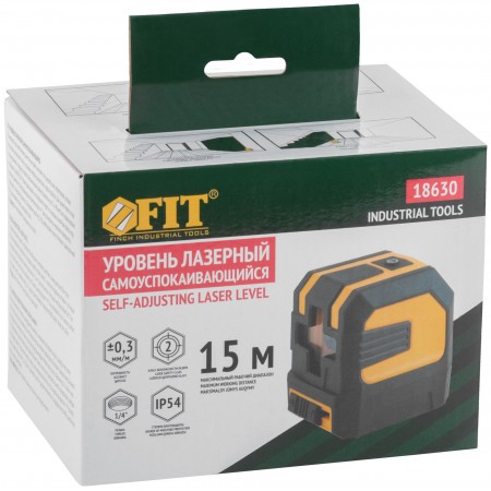Самоуспокаивающийся. Два уровня яркости луча - для внутренних и наружных работ. Максимальный рабочий диапазон до 15 м. Резьба для возможной фиксации на штативе. Может фиксировать на:поверхности крест из лазерных линий для:работы под наклоном. Диапазон компенсирования ±4° для установки на неровную поверхность. В комплекте: лазерный уровень, 3 батарейки типа АА (1,5 В), нейлоновый чехол. Материал: ударопрочный ABS пластиковый корпус, цинковый сплав. Упаковка: картонная коробка.