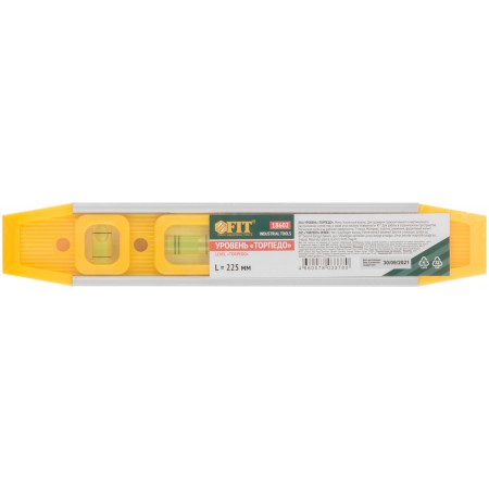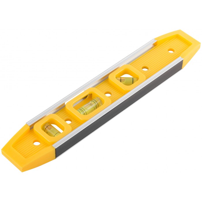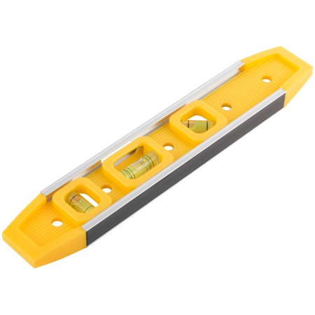 Уровень "Торпедо" пластиковый, 3 глазка, магнитный, с алюминиевой рамкой 225 мм (18602)