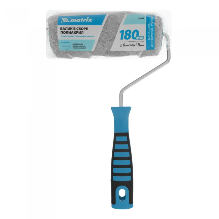 Валик для фасадных работ синтетический с двухкомпонентной ручкой, 180 мм, ворс 18 мм, D 48 мм, D ручки 6 мм, полиакрил Matrix (80654)