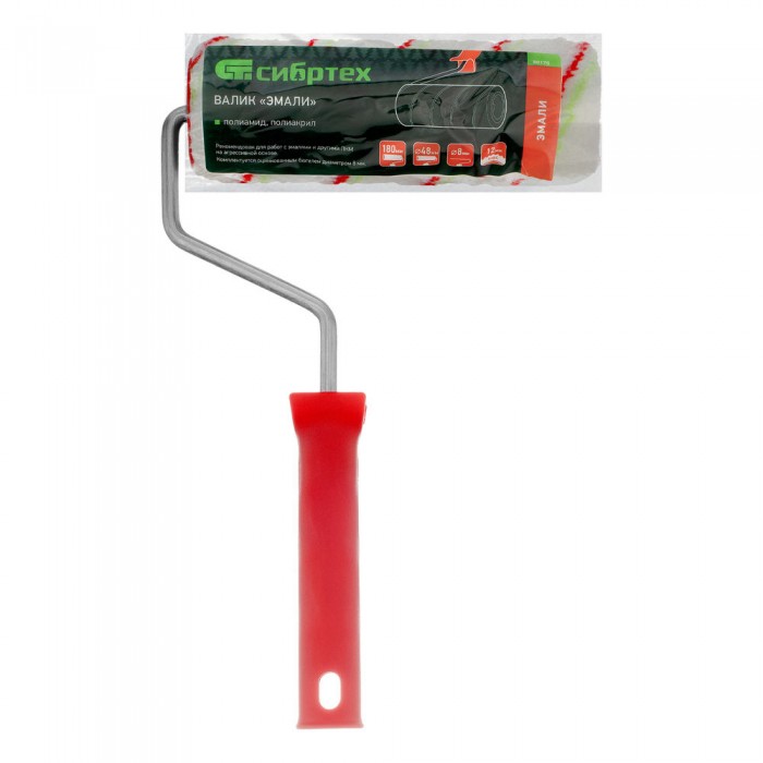 Валик "Эмали" , 180 мм, ворс 12 мм, D 48 мм, D ручки 8 мм, полиамид, полиакрил Сибртех (80170)