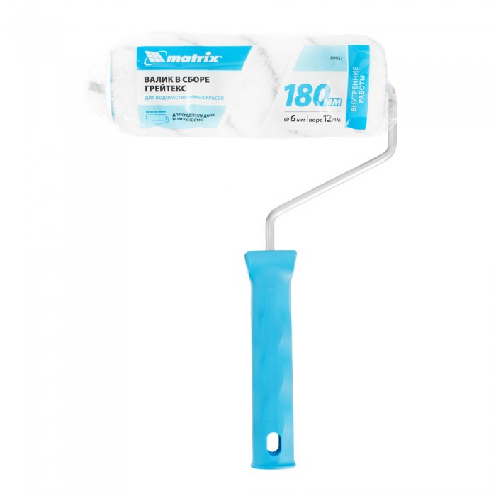 Валик "Грейтекс", 180 мм, ворс 12 мм, D 48 мм, D ручки 6 мм, полиакрил Matrix (80657)