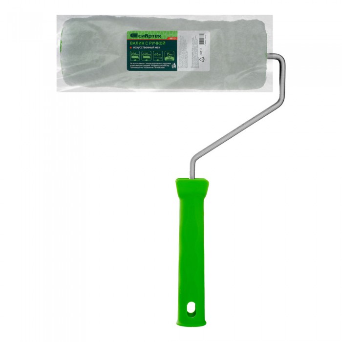 Валик "Искусственный мех" с ручкой, 200 мм, ворс 15 мм, D 48 мм, D ручки 6 мм, полиэстер Сибртех (80113)