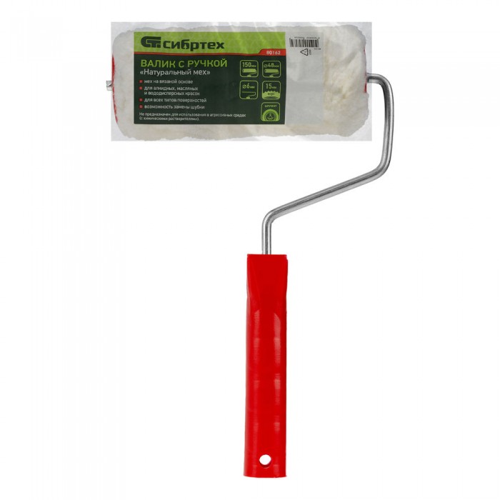 Валик "Натуральный мех", в сборе, 150 мм, D 48 мм, D ручки 6 мм, крепление шплинтом Сибртех (80162)