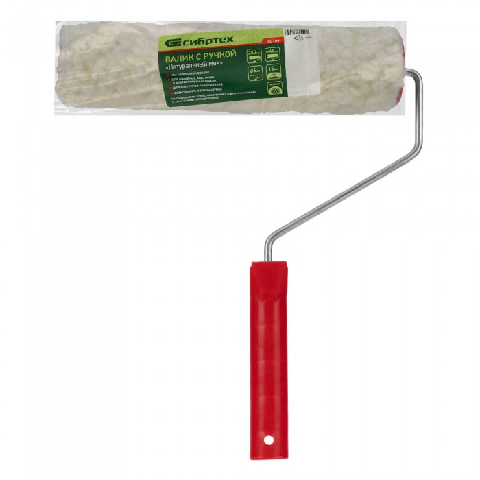 Валик "Натуральный мех", в сборе, 250 мм, D 48 мм, D ручки 6 мм, крепление шплинтом Сибртех (80164)