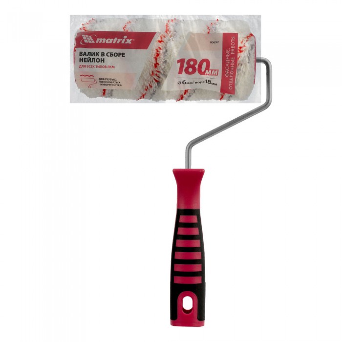 Валик "Нейлон Люкс" с двухкомпонентной ручкой, 180 мм, ворс 18 мм, D 48 мм, D ручки 6 мм, полиамид Matrix (80652)