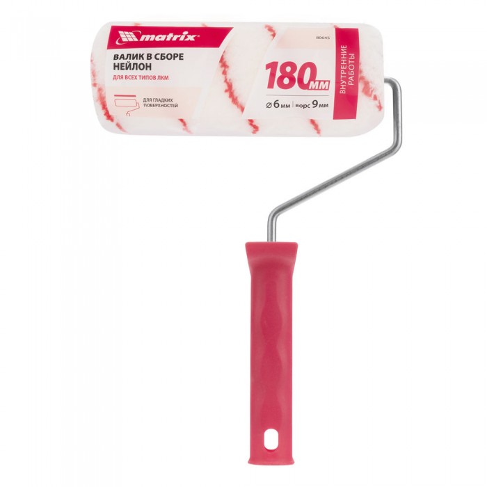 Валик "Нейлон Стандарт", 180 мм, ворс 9 мм, D 48 мм, D ручки 6 мм, полиамид Matrix (80645)