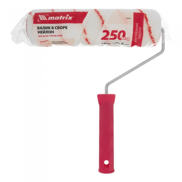 Валик "Нейлон Стандарт", 250 мм, ворс 9 мм, D 48 мм, D ручки 6 мм, полиамид Matrix (80646)