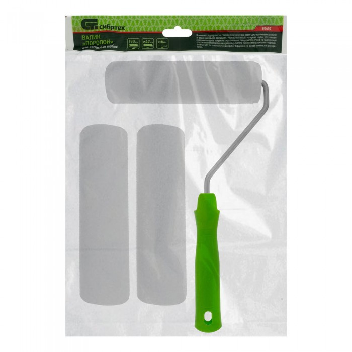 Валик "Поролон" с ручкой и 2 шубки 180 мм, D 42 мм D ручки 6 мм Сибртех (80452)