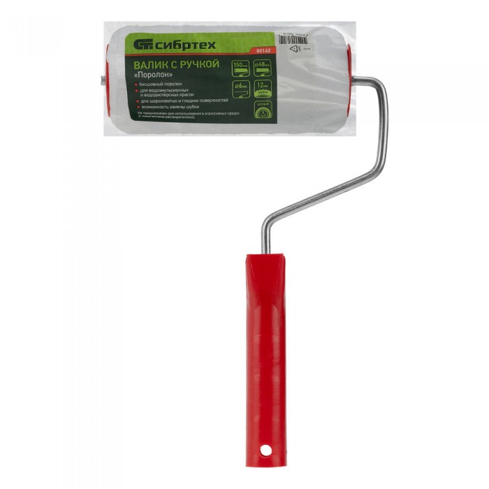 Валик "Поролон", в сборе, 150 мм, D 48 мм, D ручки 6 мм, крепление шплинтом Сибртех (80142)