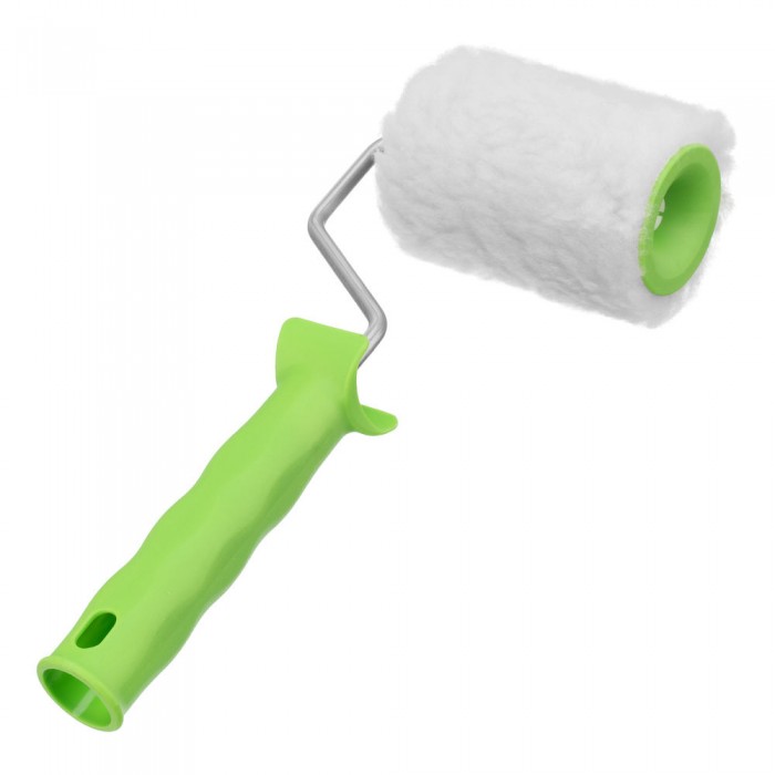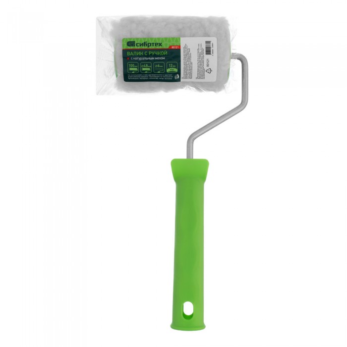 Валик с натуральным мехом, с ручкой, 100 мм, ворс 12 мм, D 48 мм, D ручки 6 мм, Сибртех (80121)