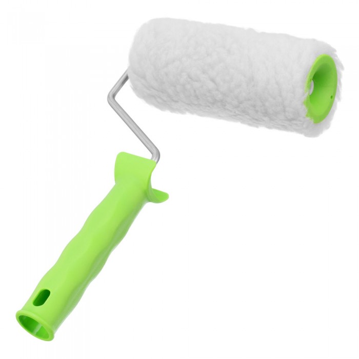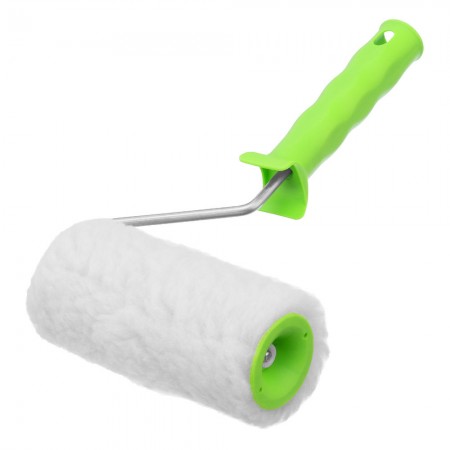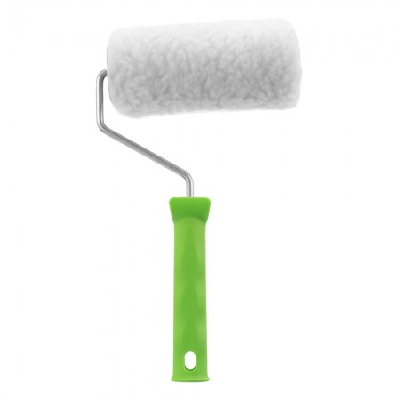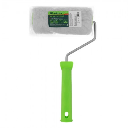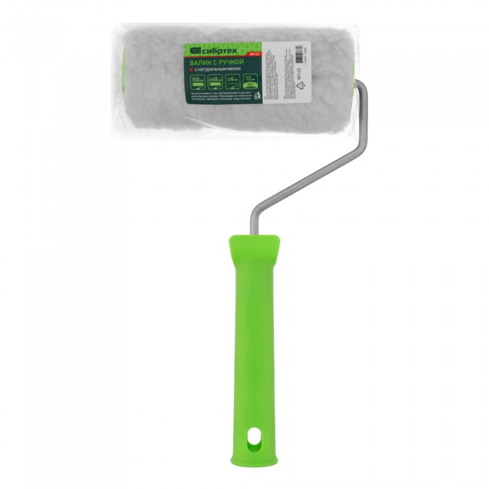 Валик с натуральным мехом, с ручкой, 150 мм, ворс 12 мм, D 48 мм, D ручки 6 мм, Сибртех (80122)