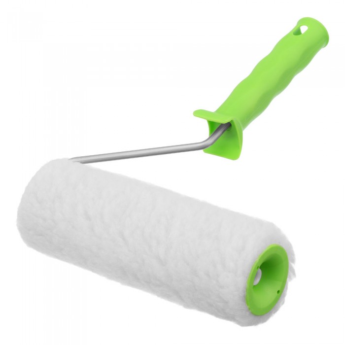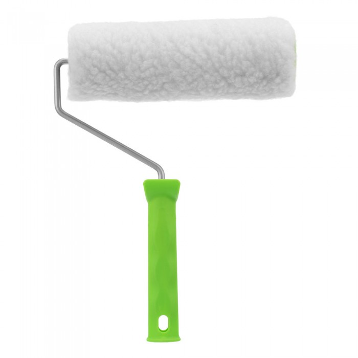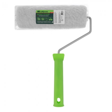 Валик с натуральным мехом, с ручкой, 200 мм, ворс 12 мм, D 48 мм, D ручки 6 мм, Сибртех (80123)