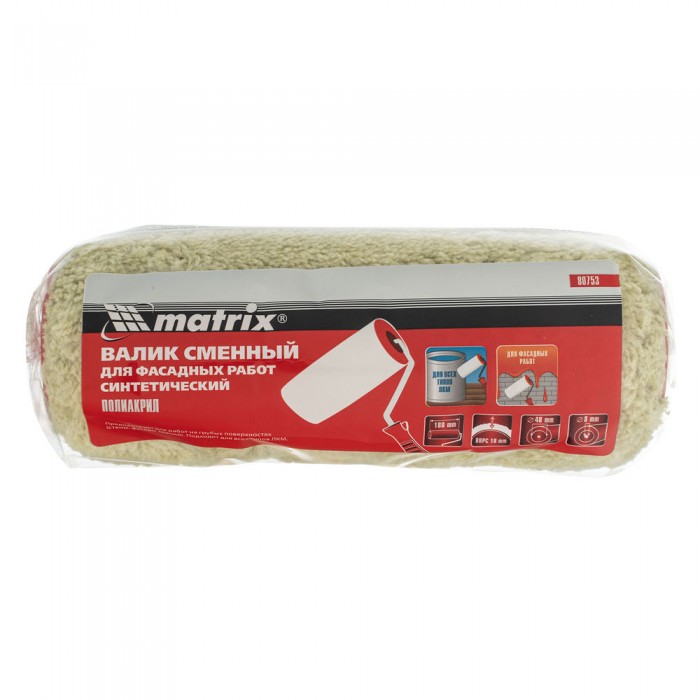 Валик сменный для Фасадных работ синтетический, 180 мм, ворс 18 мм, D 48 мм, D ручки 8 мм, полиакрил Matrix (80753)
