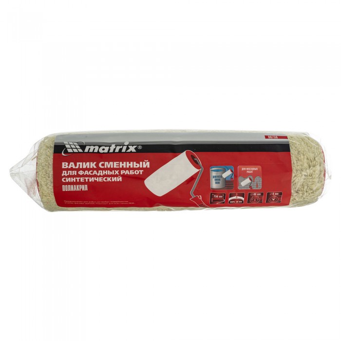Валик сменный для Фасадных работ синтетический, 250 мм, ворс 18 мм, D 48 мм, D ручки 8 мм, полиакрил Matrix (80759)