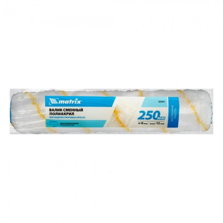 Валик сменный для внутренних работ синтетический, 250 мм, ворс 12 мм, D 36 мм, D ручки 6 мм, полиакрил Matrix (80891)