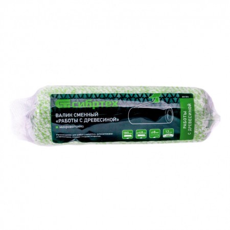 Валик сменный "Работы с древесиной", 180 мм, ворс 12 мм, D 48 мм, D ручки 8 мм, микроволокно Сибртех (80184)