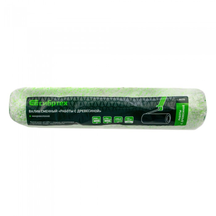 Валик сменный "Работы с древесиной", 250 мм, ворс 12 мм, D 36 мм, D ручки 6 мм,микроволокно Сибртех (80255)