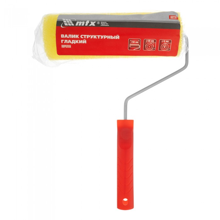 Валик "Структурный" поролоновый с ручкой, "гладкий", 230 мм, D 80 мм, D ручки 6 мм MTX (80220)