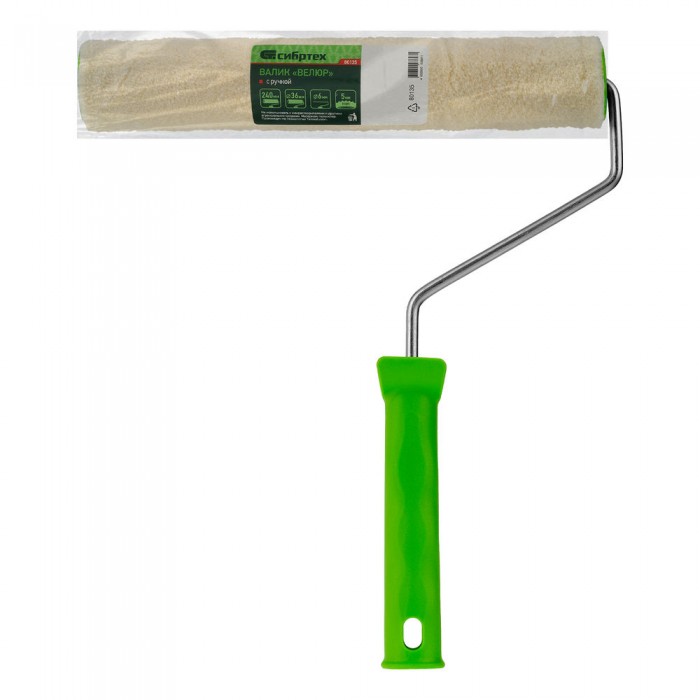 Валик "Велюр" с ручкой, 240 мм, ворс 5 мм, D 36 мм, D ручки 6 мм Сибртех (80135)