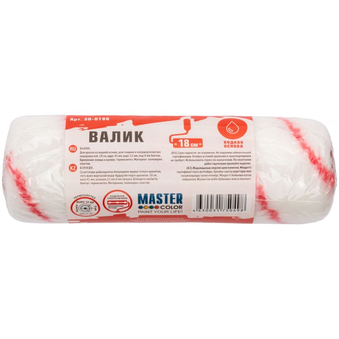 Валик, ядро 41 мм, полиакрил, ворс 12 мм, под 8 мм ручку, 180 мм (30-0786)
