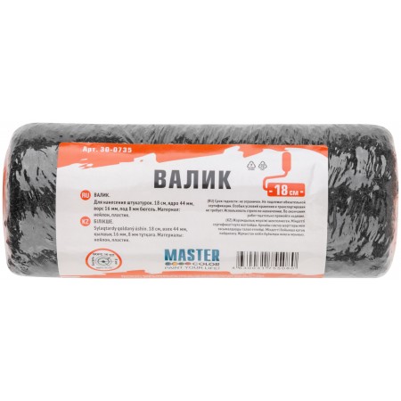 Валик, ядро 44 мм, для нанесения шпатлевок, нейлон, ворс 16 мм, под 8 мм бюгель, 180 мм (30-0735)