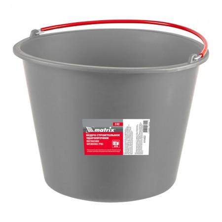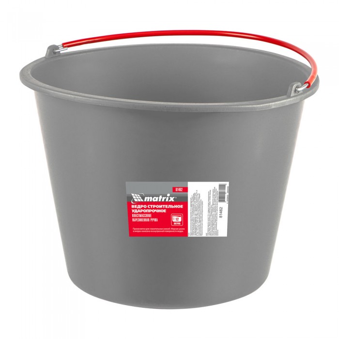Ведро строительное пластмассовое 12 л, ударопрочное, обрезиненная ручка Matrix (81462)