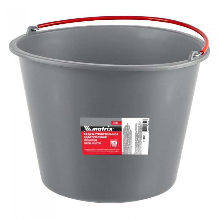Ведро строительное пластмассовое 16 л, ударопрочное, обрезиненная ручка Matrix (81463)