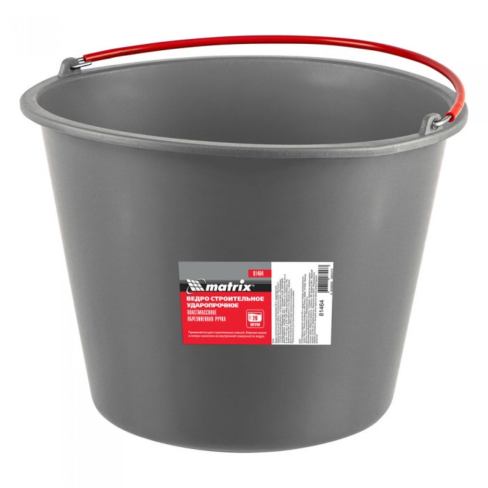 Ведро строительное пластмассовое 20 л, ударопрочное, обрезиненная ручка Matrix (81464)