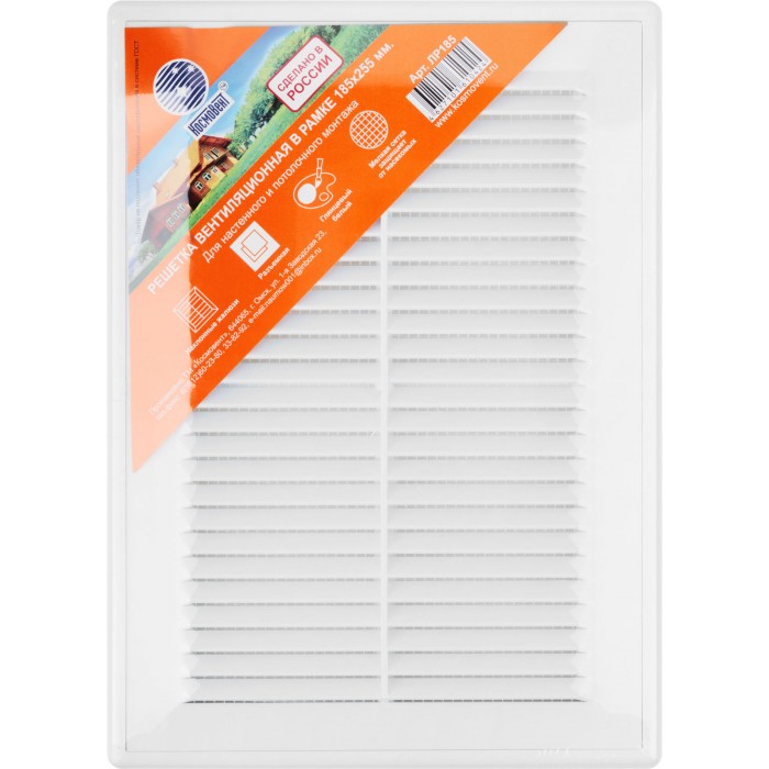 Вентиляционная решетка, пластиковая, 185 х 255 мм, съемная с сеткой (75042)