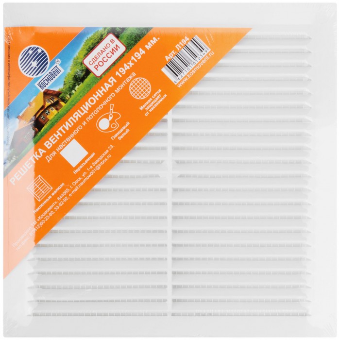Вентиляционная решетка, пластиковая, 194 х 194 мм, с сеткой (75031)