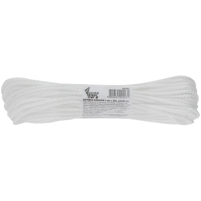 Веревка вязаная полипропиленовая, 4 мм х 20 м, р/н= 65 кгс (68382)