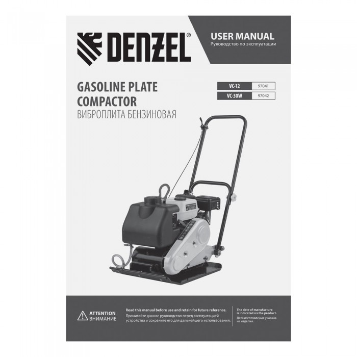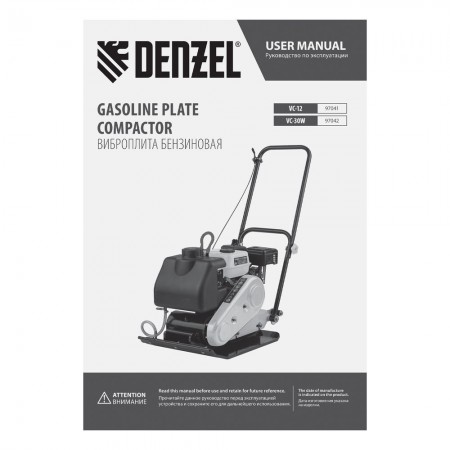 Виброплита бензиновая VC-30W, 30 кН, 60*45 см, 196 см3, бак для воды Denzel (97042)