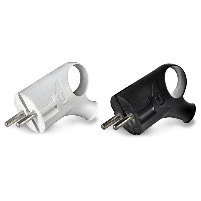 Вилка ''UNIVersal'' эл-я угловая с ушком и заземлением 16А, 250В, предназначена для подсоединения штепсельных соединений, размер кабеля с номинальным сечением жил от 0,5 до 2,5 мм. Применяется для замены вышедшей из строя или повреждении неразборной вилки.