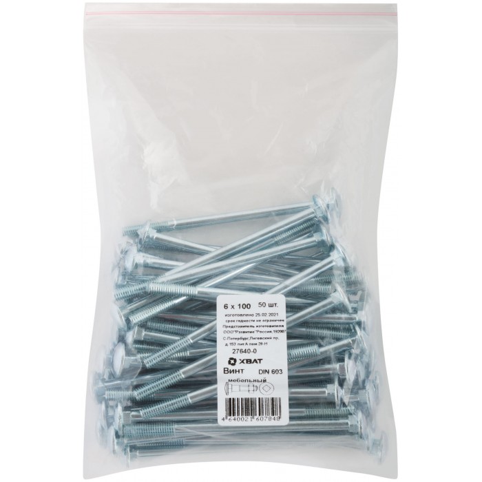 Винт мебельный (DIN 603) 6х100 50 шт Фасовка (27640-0)