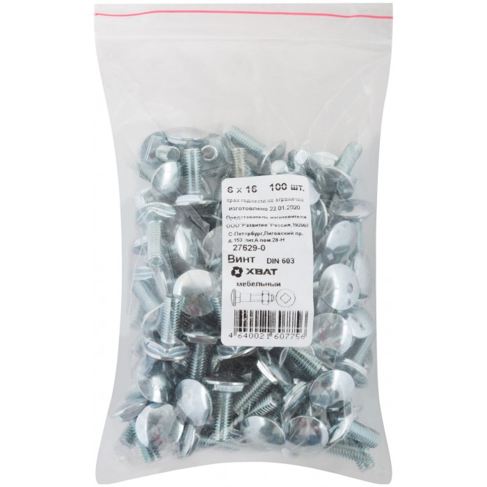 Винт мебельный (DIN 603) 6х16 100 шт Фасовка (27629-0)