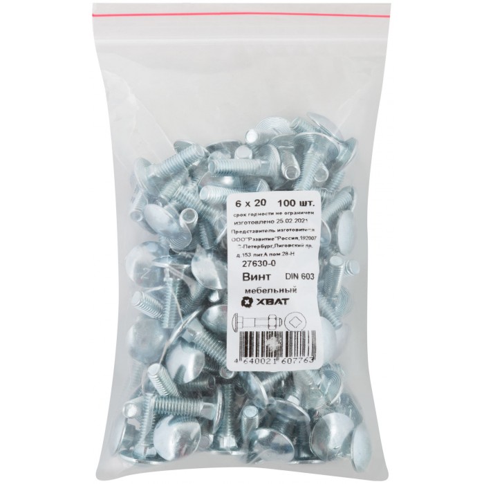Винт мебельный (DIN 603) 6х20 100 шт Фасовка (27630-0)
