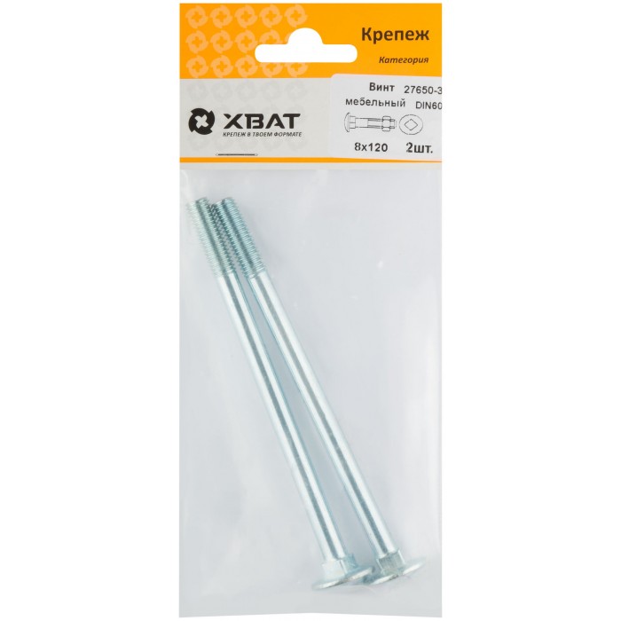 Винт мебельный (DIN 603) 8х120 (фасовка 2 шт) (27650-3)