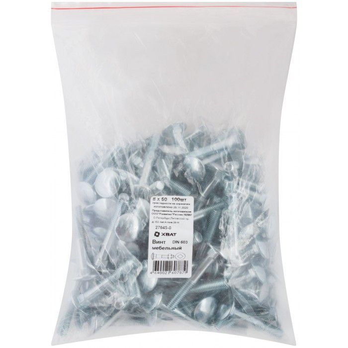 Винт мебельный (DIN 603) 8х50 100 шт Фасовка (27645-0)